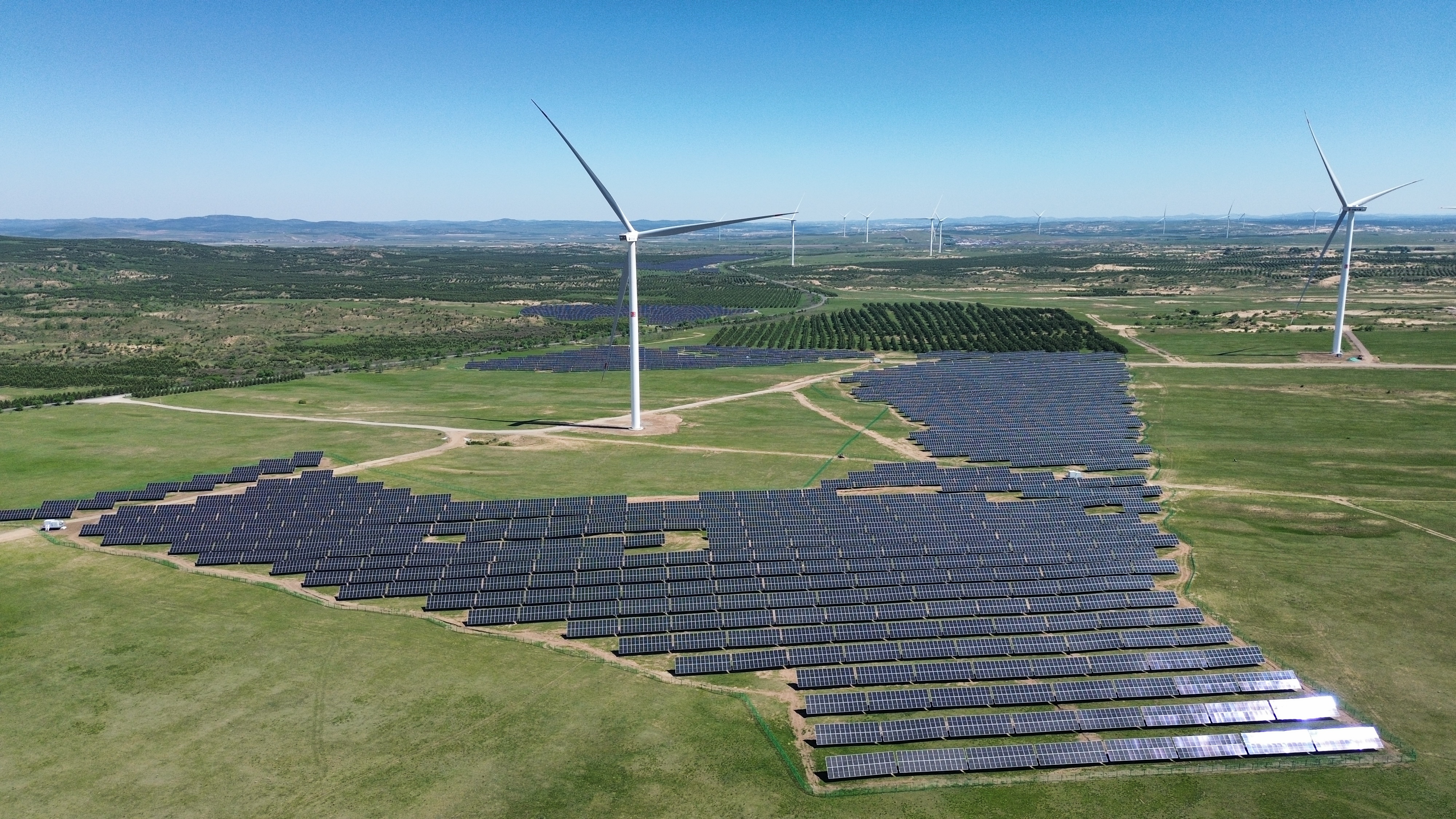 新能源分公司先后建成風(fēng)電及光伏項目224個,總?cè)萘?1948MW,其中建成光伏項目33個,容量1566MW;建成風(fēng)機機組4152臺。在建新能源項目25個,其中EPC風(fēng)電項目2個,容量100MW,EPC光伏項目7個,容量457MW。送變電工程公司在建光伏項目4個,容量420MW;在建風(fēng)電項目2個,容量74.5MW,風(fēng)機機組22臺。